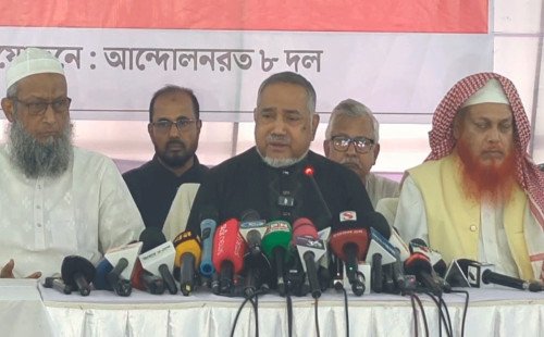 আট দলের সংবাদ সম্মেলনে দাবিগুলো তুলে ধরেন জামায়াতের নায়েবে আমির সৈয়দ আবদুল্লাহ মো. তাহের।