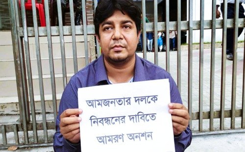 নিবন্ধন না পেয়ে অনশনে আমজনতার দলের সদস্য সচিব তারেক রহমান